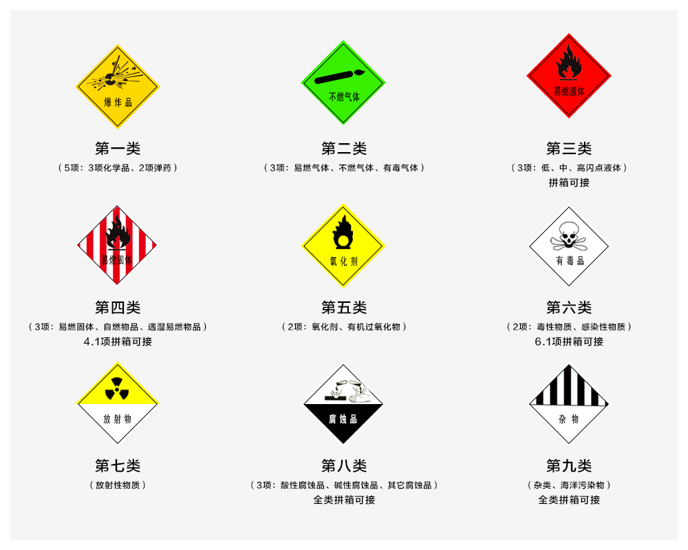 第九大類:其他危險品,指存在危險但不能滿足其他類別定義的物質(zhì)和物品。例如電池組等。